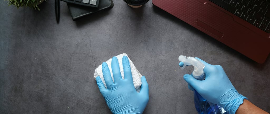 Dépoussiérage et désinfection des surfaces de travail, poignées, claviers, téléphones, etc.