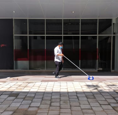 Nous utilisons des équipements haute pression de qualité professionnelle, adaptés à tous types de surfaces (pierre, carrelage extérieur, dalles béton, bois composite, pavés, etc.), avec un réglage précis de la puissance, afin de préserver l'intégrité des matériaux tout en éliminant efficacement :